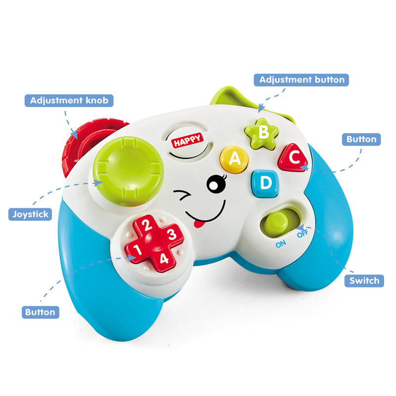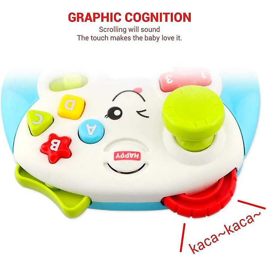 Get your little one into the gaming fun with this video game controller look alike with multicolored, light-up face.