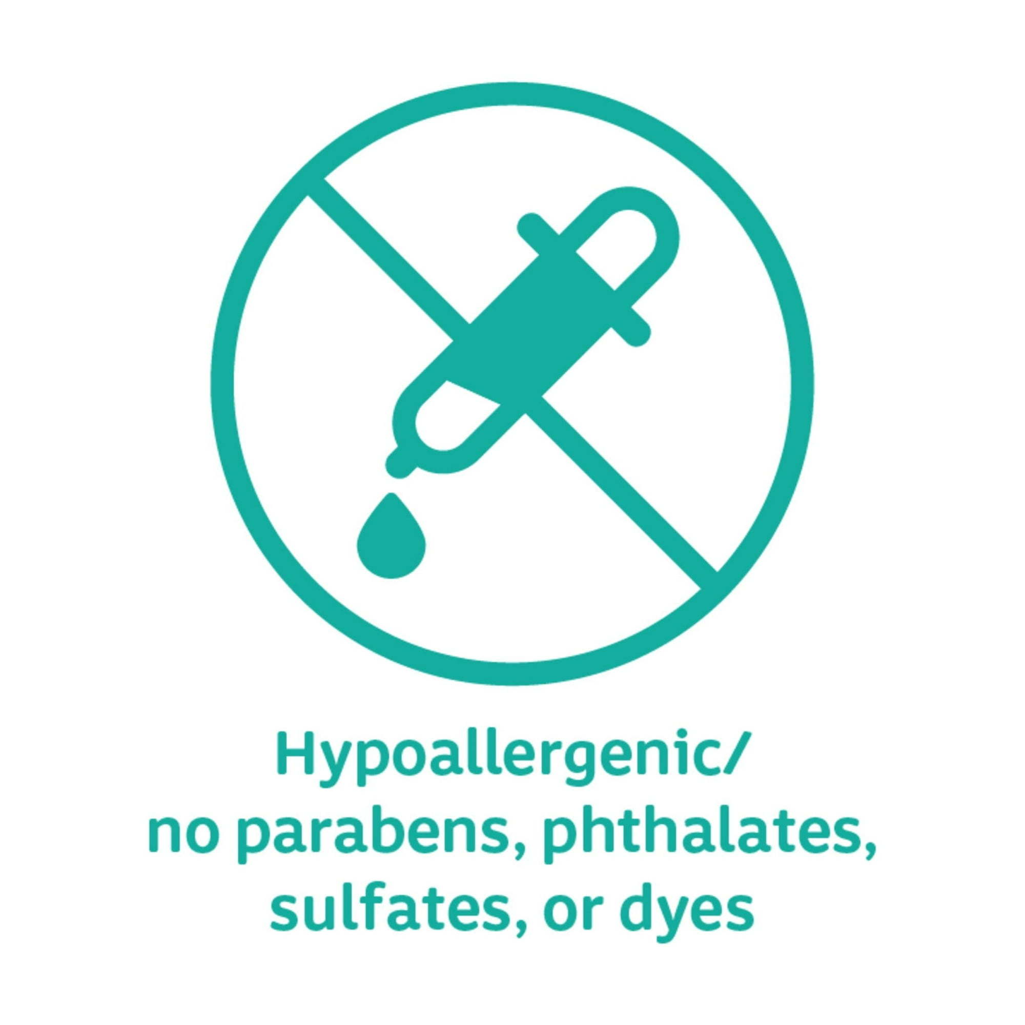 pH balanced to baby's sensitive skin, hypoallergenic, free of parabens, phthalates dyes & sulfates